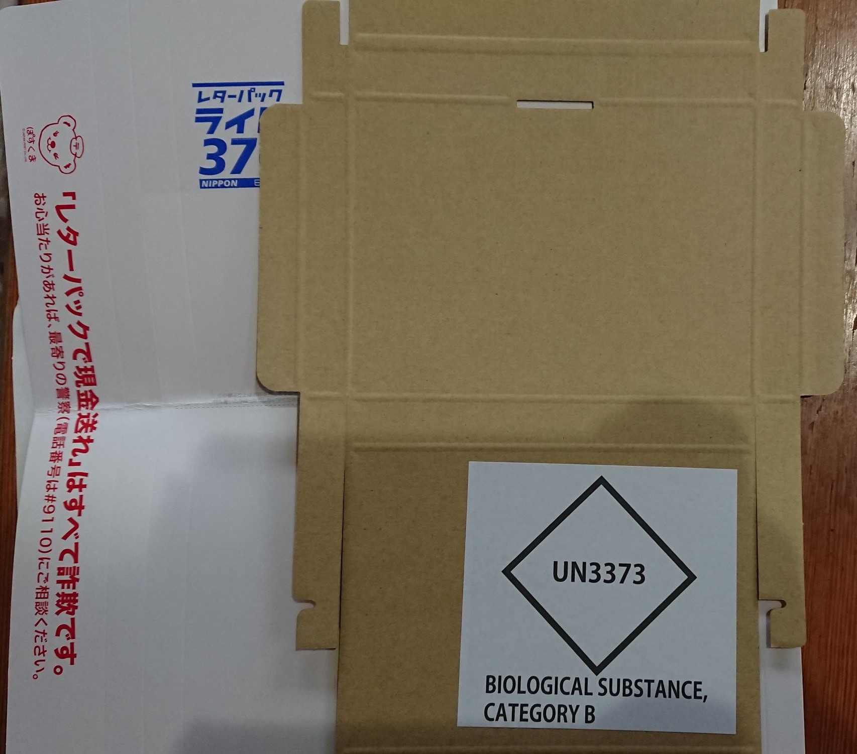 PCR検査のキットはレターパックで届きました。