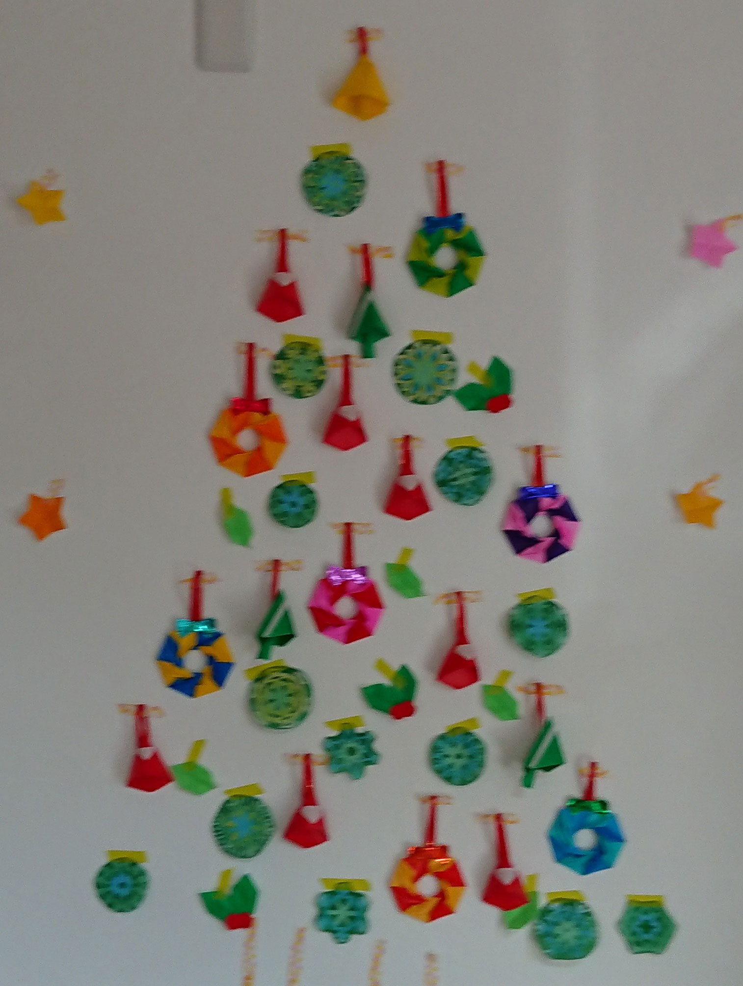 変な形になって失敗した切り紙も重ねあわせて貼ると